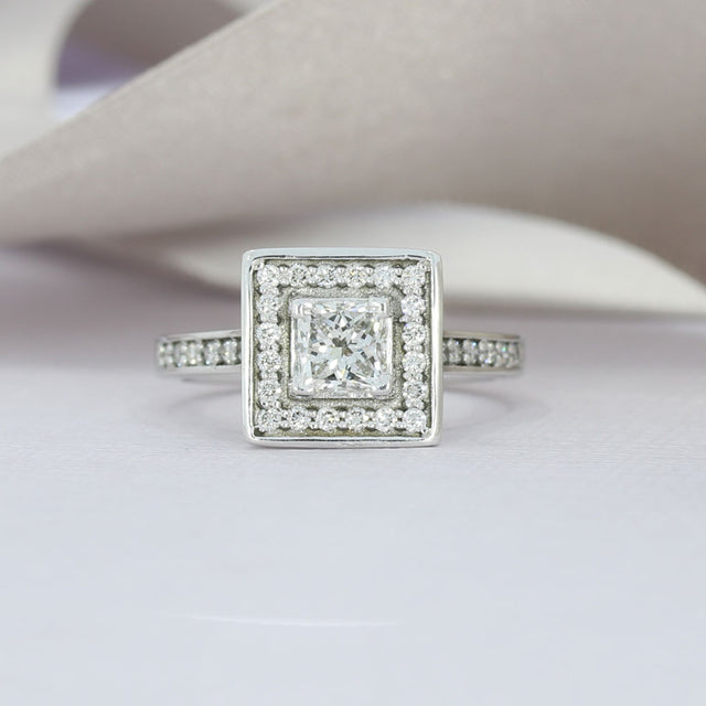 Pre Owned 18ct Gold Certified Princess Cut Diamond Square Halo Ring 1.05ct F SI1
