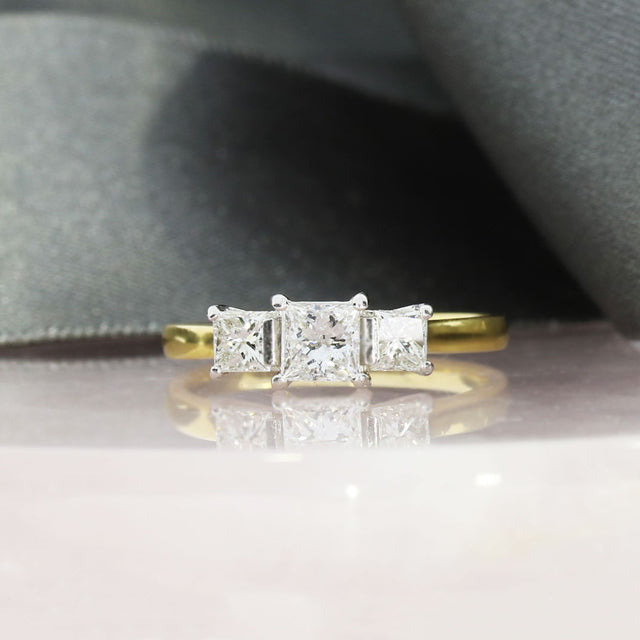 Pre Owned 18ct Yellow Gold Claw Set Princess Cut Diamond 3 Stone Ring 1.33ct
