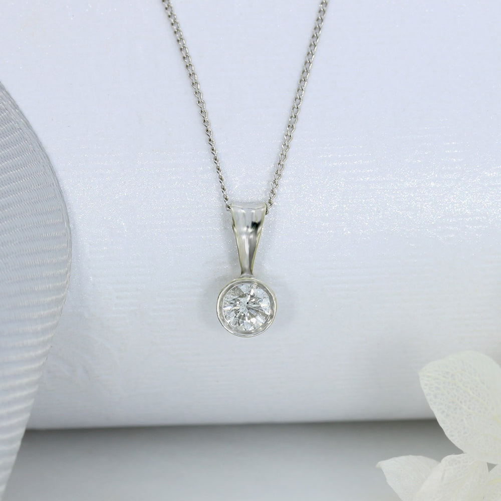 Pre Owned 9ct White Gold Rubover Set Natural Diamond Pendant & Chain Approx 0.25ct