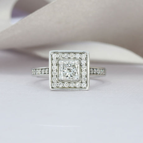 - Pre Owned 18ct Gold Certified Princess Cut Diamond Square Halo Ring 1.05ct F SI1 £3,495.00Unit price /Unavailable