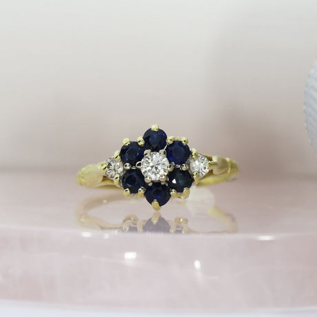 - Pre Owned 18ct Yellow Gold Sapphire & Diamond Flower Cluster Ring £585.00Unit price /Unavailable
