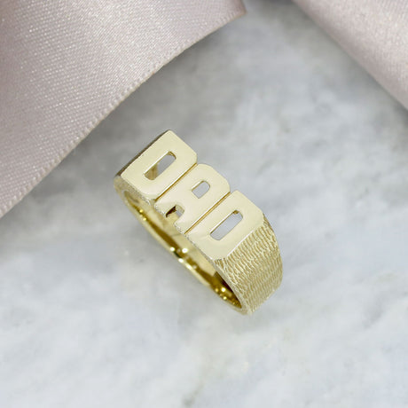 - Pre Owned 9ct Yellow Gold DAD Ring With Patterned Shank £395.00Unit price /Unavailable