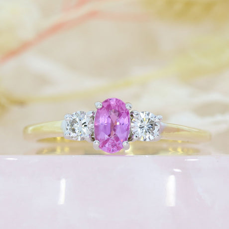 £495.00Unit price /UnavailablePre Owned 18ct Yellow Gold Oval Pink Sapphire & Diamond 3 Stone Ring