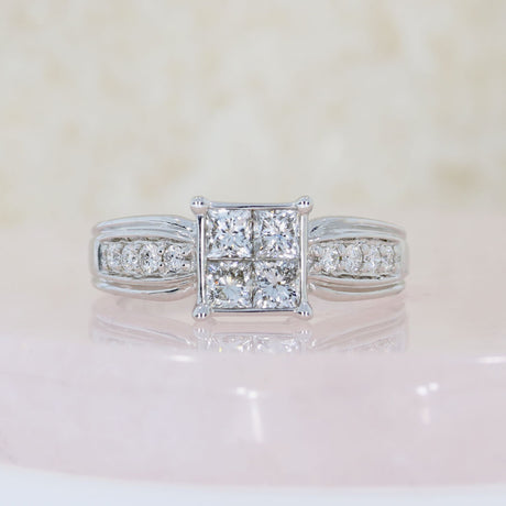 £495.00Unit price /UnavailablePre Owned 18ct White Gold Invisible Set Princess Cut Diamond Cluster Ring 1.00ct