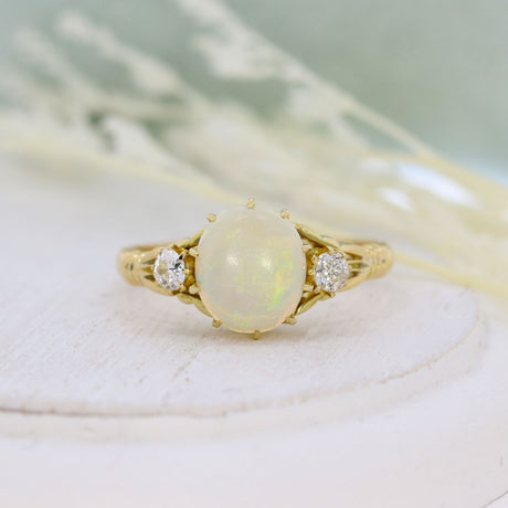 £195.00Unit price /UnavailablePre Owned 18ct Yellow Gold Oval Opal & Round Diamond Ring