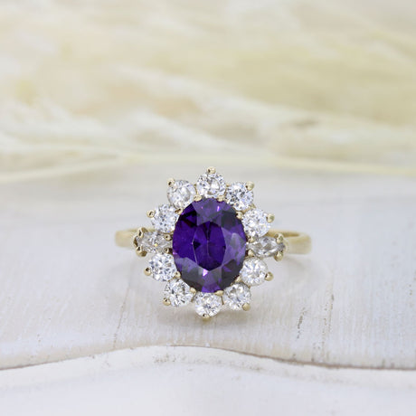 £595.00Unit price /UnavailablePre Owned 9ct Yellow Gold Synthetic Purple Stone & CZ Cluster Ring