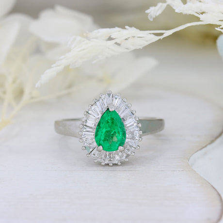 £2,150.00Unit price /UnavailablePre Owned Platinum Pear Shaped Emerald & Baguette Diamond Cluster Ring