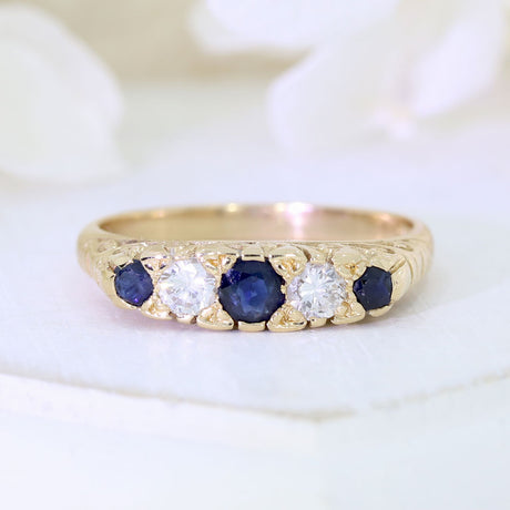 £925.00Unit price /UnavailablePre Owned 18ct Yellow Gold Sapphire & Diamond 9 Stone Claw Set Eternity Ring