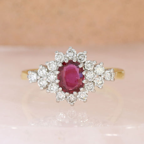 £1,395.00Unit price /UnavailablePre Owned 18ct Yellow Gold Oval Ruby & Diamond Cluster Ring