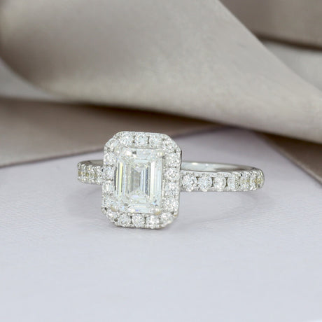Certified Pre Owned 18ct Emerald Cut Cluster Ring with Diamond Shoulder Stones total 1.52ct
