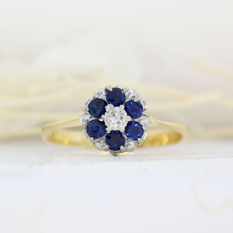 £495.00Unit price /UnavailablePre Owned 18ct Yellow Gold Sapphire Cluster Ring with a Diamond Centre