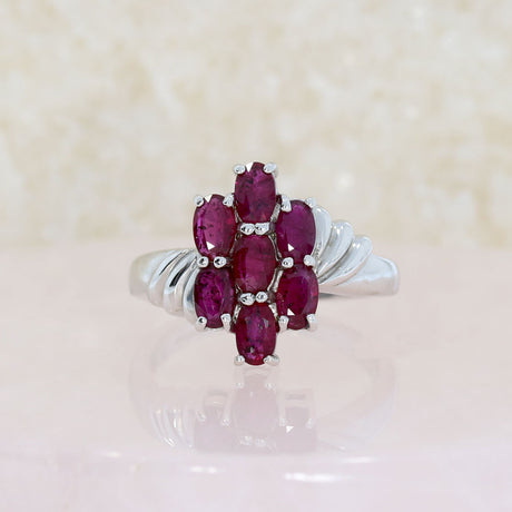£1,100.00Unit price /UnavailablePre Owned 9ct White Gold Oval Ruby Flower Cluster Ring