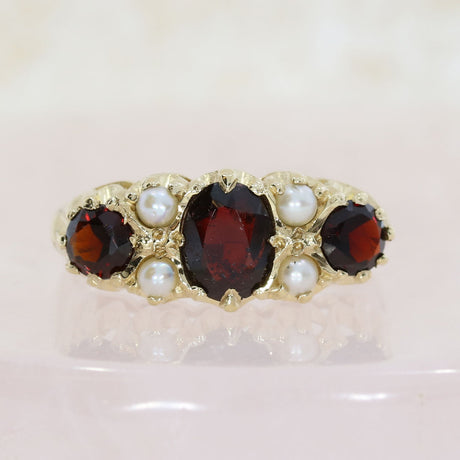 £190.00Unit price /UnavailablePre Owned 9ct Yellow Gold Garnet & Seed Pearl Dress Ring