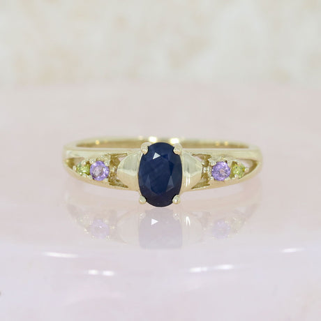 £2,995.00Unit price /UnavailablePre Owned 9ct Yellow Gold Oval Sapphire Ring with Amethyst & Peridot Shoulders