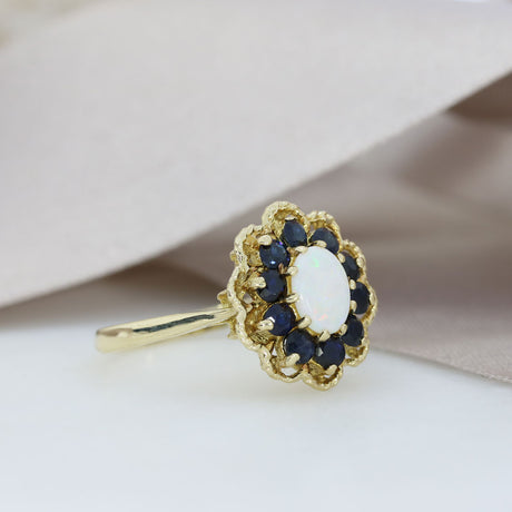 £215.00Unit price /UnavailablePre Owned 9ct Yellow Gold Oval Opal & Sapphire Custer Ring