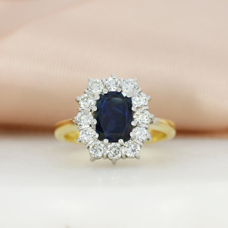 £295.00Unit price /UnavailablePre Owned 18ct Yellow Gold Large Claw Set Oval Sapphire & Diamond Cluster Ring