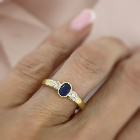 £3,350.00Unit price /UnavailablePre Owned 18ct gold Rubover Set Sapphire & Diamond 3 Stone Ring