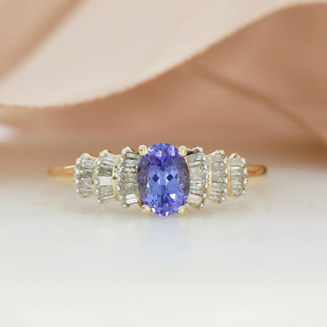 £695.00Unit price /UnavailablePre Owned 9ct Yellow Gold Oval Tanzanite & Diamond Cluster Ring