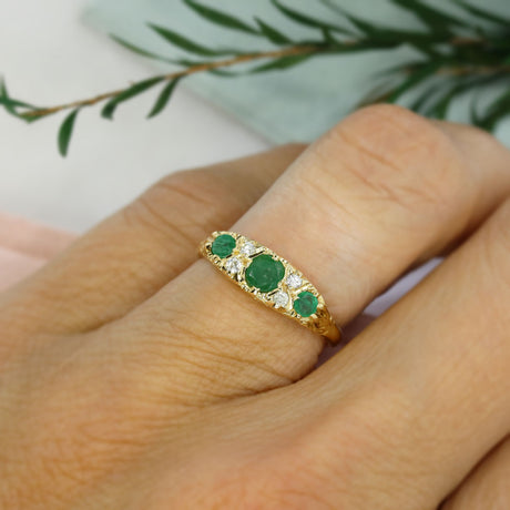 £1,295.00Unit price /UnavailablePre-Owned 18ct Yellow Gold Antique Style Emerald & Diamond Boat Ring