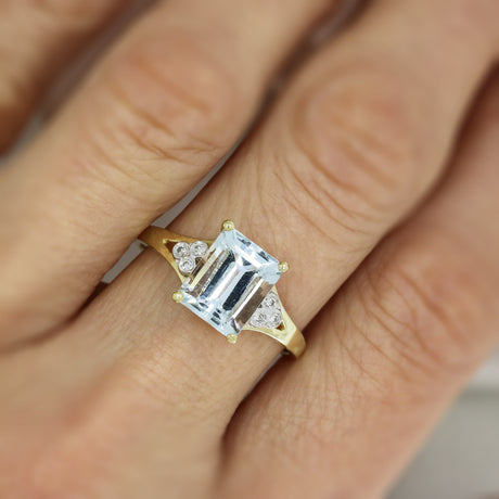 £1,795.00Unit price /UnavailablePre Owned 9ct Yellow Gold Oblong Aquamarine Ring with Diamond Set Shoulders