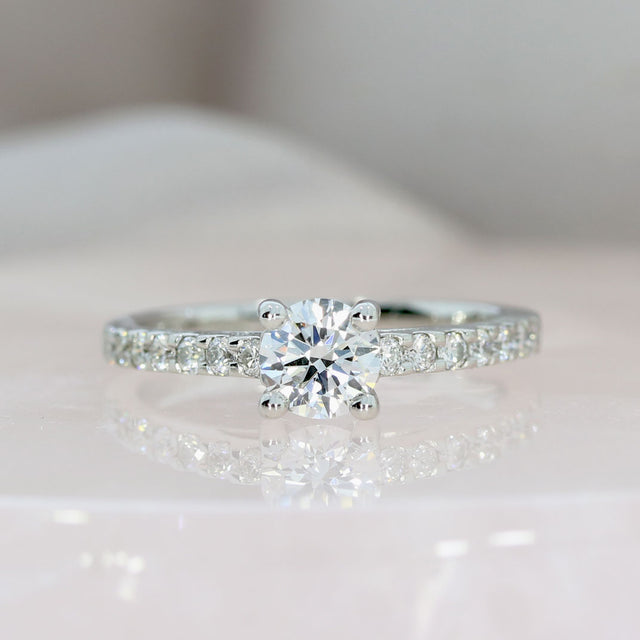 Pre Owned GIA Certified Platinum Diamond Solitaire Ring With Diamond Shoulders 0.65ct