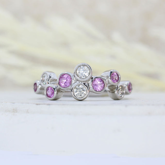 Pre Owned 18ct White Gold Pink Sapphire & Diamond Bubble Ring