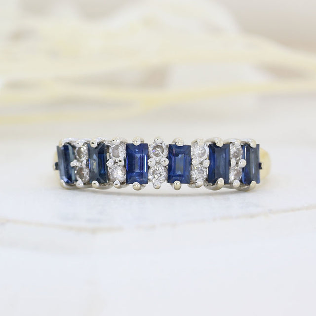 Pre Owned 18ct Yellow Gold Baguette Sapphire & Round Diamond Eternity Ring