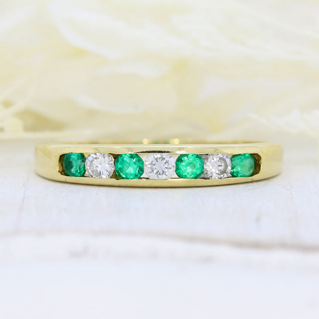 Pre Owned 18ct Yellow Gold Channel Set Emerald & Diamond Eternity Ring