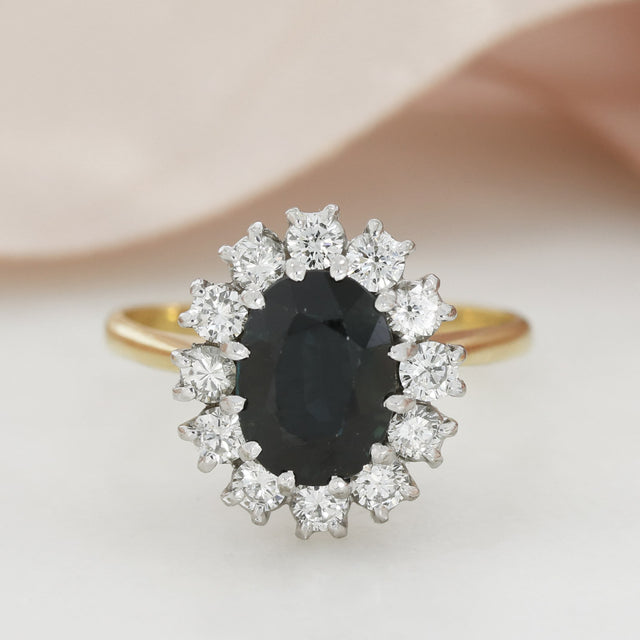 Pre Owned 18ct Yellow Gold Claw Set Oval Sapphire & Round Diamond Cluster Ring
