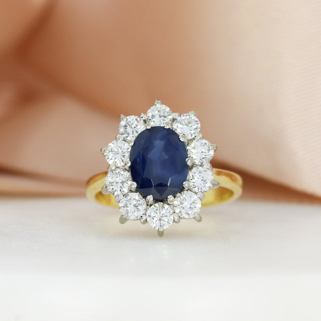 Pre Owned 18ct Yellow Gold Large Claw Set Oval Sapphire & Diamond Cluster Ring