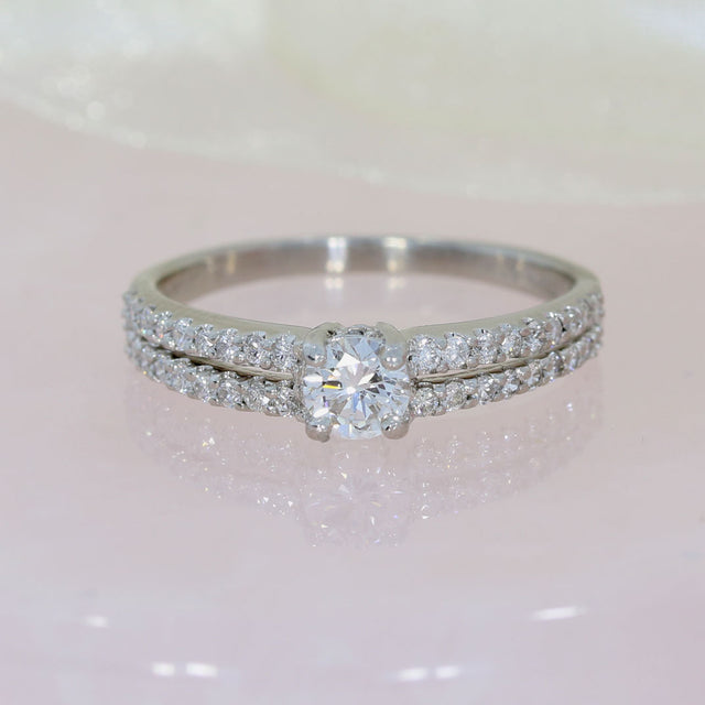 Pre Owned IGI Certified Platinum 4 claw Set Diamond Solitaire Ring with Split Diamond Set Shoulders