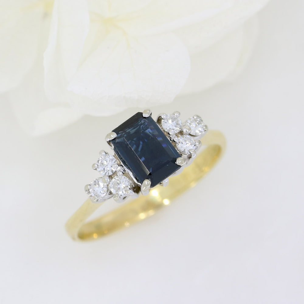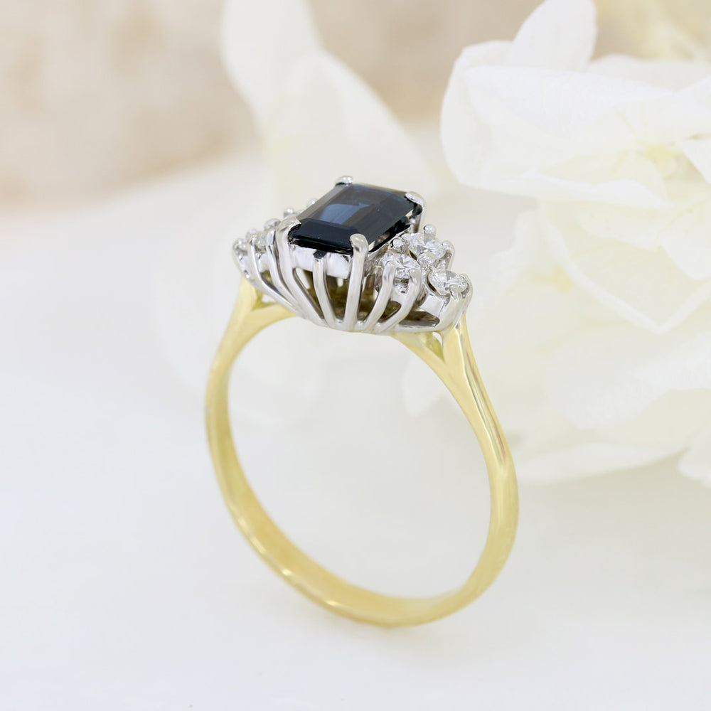Pre Owned 18ct Yellow Gold Emerald Cut Sapphire & Diamond Cluster Ring