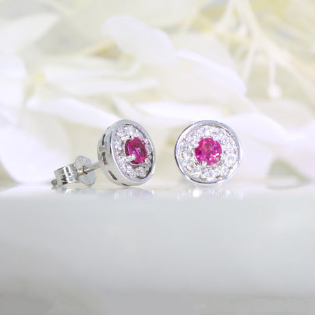 18ct White Gold Ruby and Diamond Halo Earrings