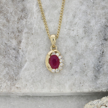 £1,950.00Unit price /Unavailable9ct Yellow Gold Oval Ruby & Diamond Pendant