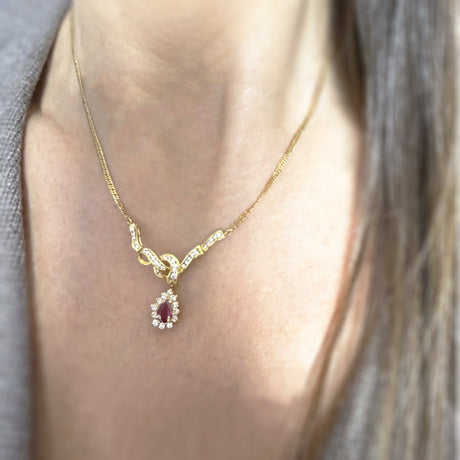 £520.00Unit price /UnavailablePre Owned 18ct Yellow Gold Ruby & Diamond Necklace Approx Diamond Weight: 0.75ct