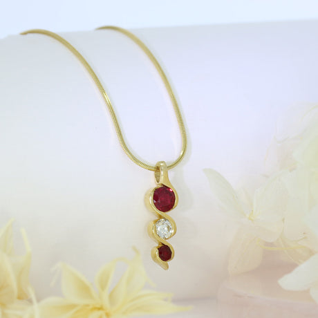 £1,995.00Unit price /Unavailable9ct Yellow Gold Ruby & Diamond 3 Stone Pendant on a 9ct 19" Chain
