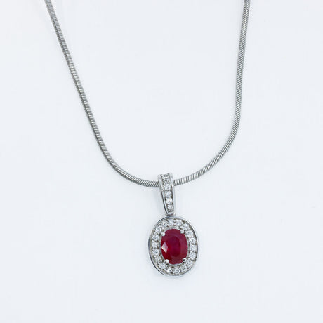 £1,145.00Unit price /Unavailable18ct White Gold Oval Ruby and Diamond Halo Pendant on an 18ct 18" Anchor Chain