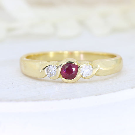 - 18ct Yellow Gold Rubover Set Round Ruby & Diamond 3 Stone Ring £825.00Unit price /Unavailable
