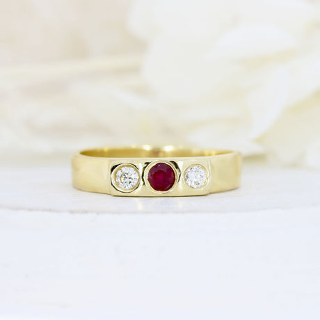 - 18ct Yellow Gold Rub Over Set Ruby & Diamond 3 Stone Ring £550.00Unit price /Unavailable