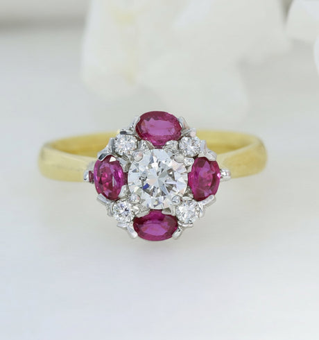 - 18ct Yellow & White Gold Claw Set Round Ruby and Diamond Cluster Ring £1,095.00Unit price /Unavailable