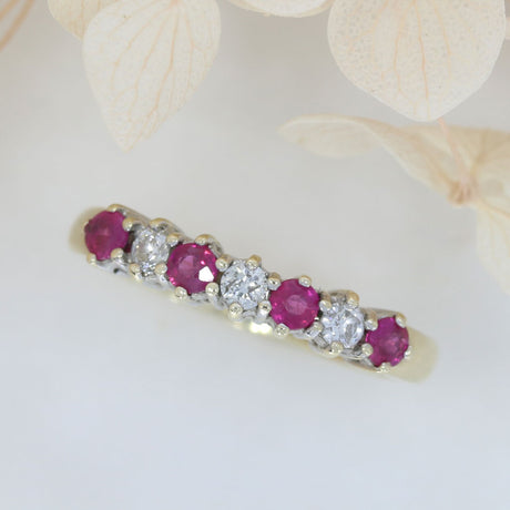 - 9ct Yellow Gold 7 Stone Pave Set Ruby & Diamond Half Eternity Ring £695.00Unit price /Unavailable