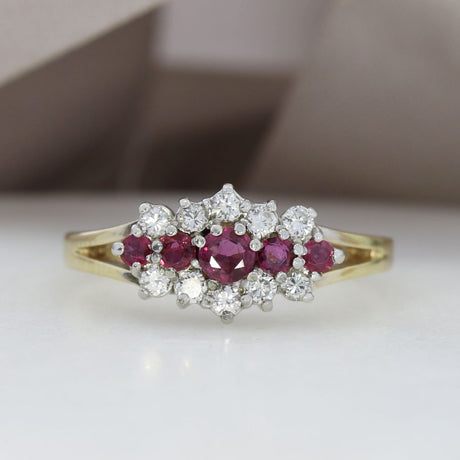 - 9ct Yellow Gold Five Stone Ruby & Diamond Cluster Ring £290.00Unit price /Unavailable