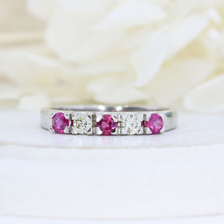 - 18ct White Gold Ruby & Diamond 5 Stone Claw Set Eternity Ring £650.00Unit price /Unavailable