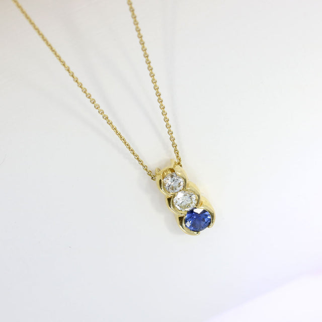 18ct Gold Sapphire & Diamond 3 Stone Pendent On an 18ct Gold 18" Chain