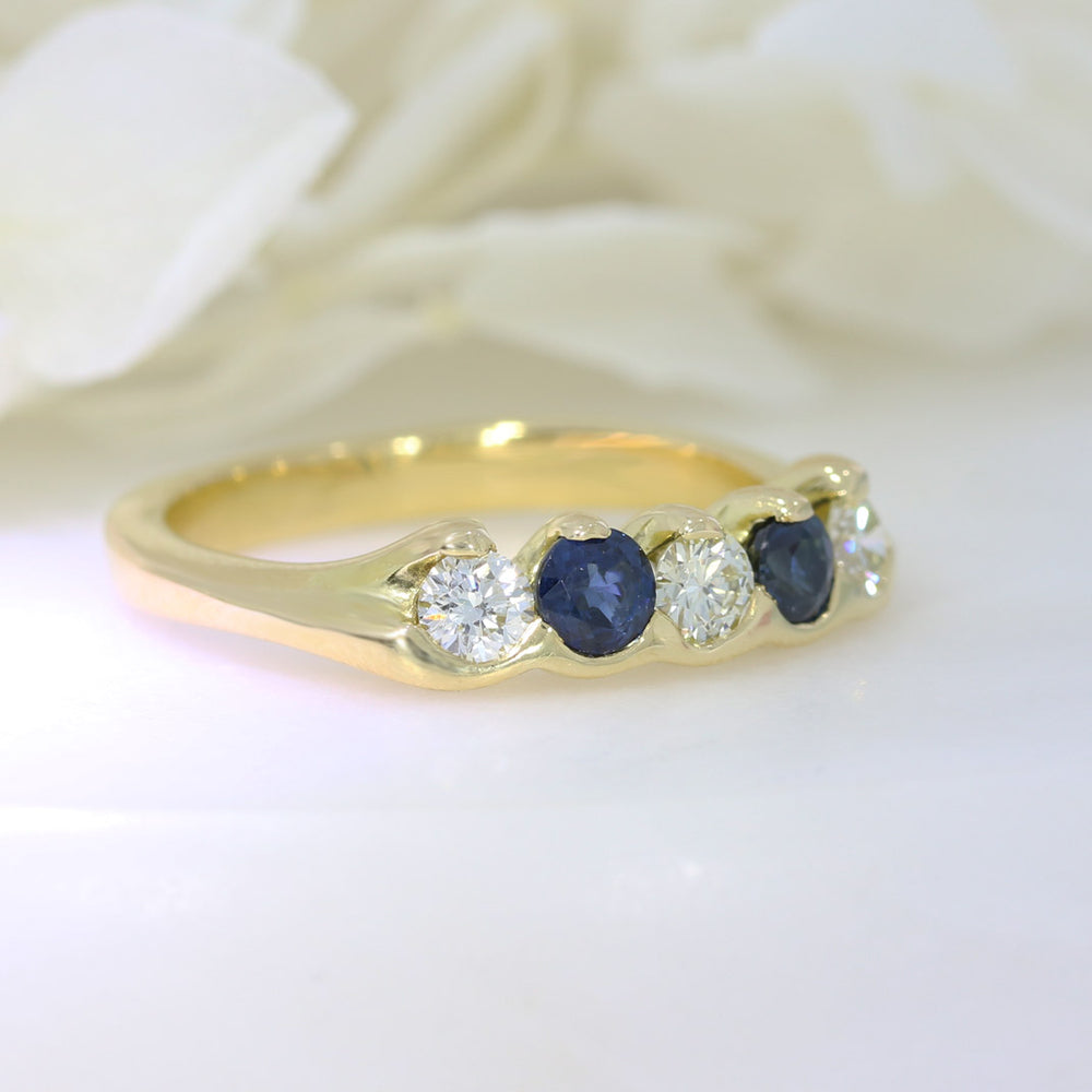 18ct Yellow gold round Sapphire .54ct and Diamond .54ct 5 stone half eternity ring with part claw and part rub over setting