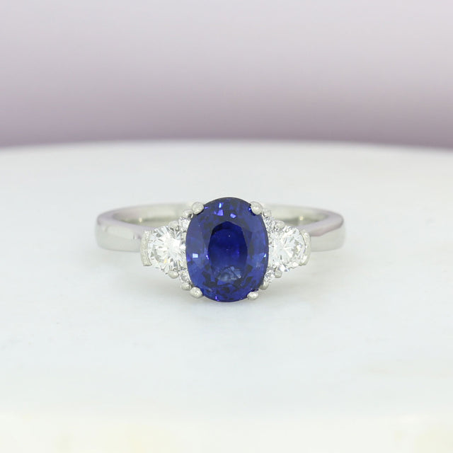 Platinum 2.11ct Oval Sapphire & Diamond 3 Stone Ring 0.40ct