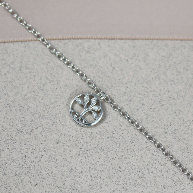Silver Trace Chain Bracelet with Tree Of Life Set Charm with Cubic Zirconia's