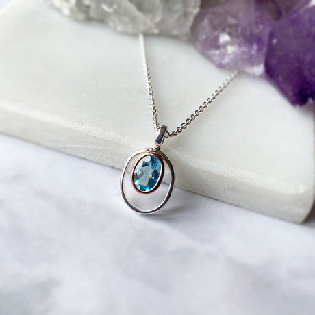 £31.00Unit price /UnavailableSilver Oval Blue Topaz Pendant with Rose Gold Accent