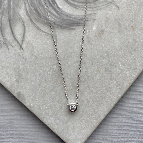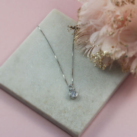 £16.00Unit price /UnavailableSilver Rhodium Rubover Set Cubic Zirconia Pendant