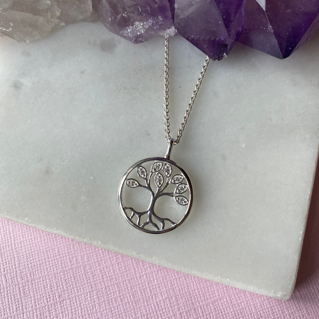 Silver and CZ Tree Of Life Pendant On a Silver Chain